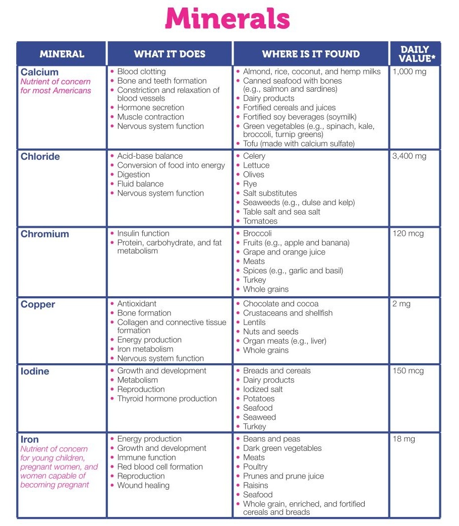 People looking to eat healthier sometimes struggle. Not easy knowing what vitamins and minerals are in different foods. They want a chart that lists all these details. Helps make better food choices. Vitamin examples include vitamin A, C, D, E, and the B vitamins (B1, B2, B3, B5, B6, B7, B9, B12). Mineral inorganic elements that come from the soil and are absorbed by plants or animals. They are essential for bone health, blood clotting, and enzyme function. Examples include calcium, phosphorus, magnesium, iron, zinc, and iodine